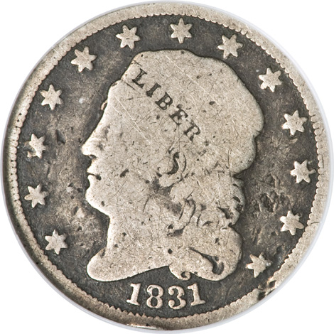 1831 $2 1/2 Quarter Eagle Struck on a Dime Planchet Good 6 NGC