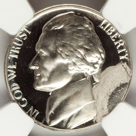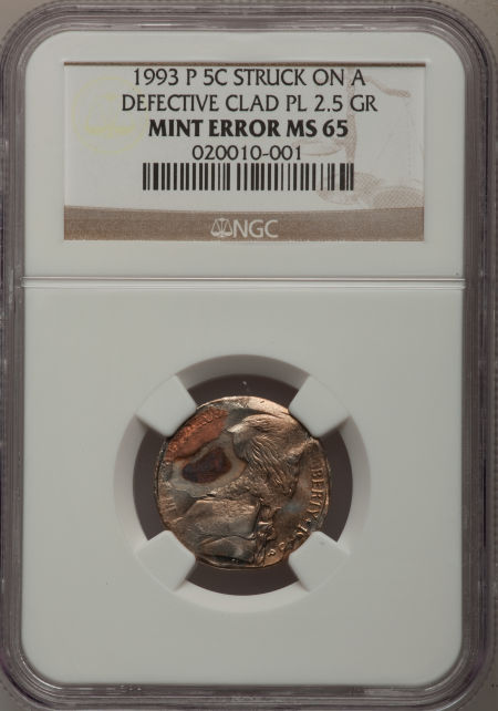 1993-P Jefferson Nickel--Struck on a Defective Clad Planchet 2.5 GR--MS65 NGC