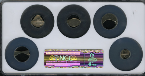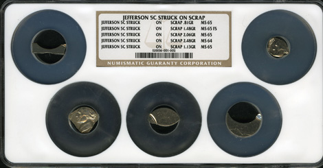 Five Jefferson Nickels Struck on Scrap MS64 to MS65