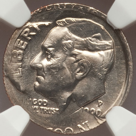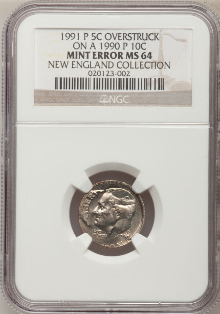 1991-P 5C Nickel--Overstruck on a 1990-P Dime--MS64 NGC