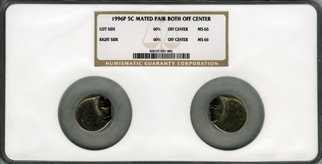 Mated Pair of 1996 Jefferson Nickels--Struck 60% Off Center--MS66 NGC