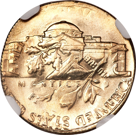 Undated Jefferson Nickel--Saddle Struck on a Dime Blank--MS64 NGC