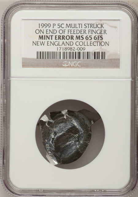 1999-P 5C Jefferson Nickel--Multiple Struck Bonded Planchet, Reverse Split Die--MS67 NGC