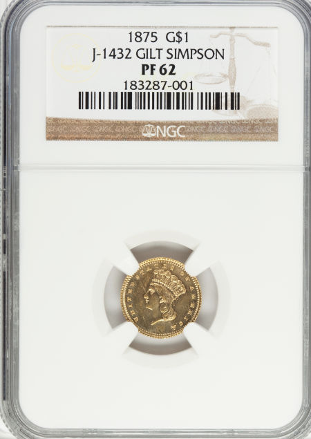 1875 G$1 Gold Dollar, Judd-1432, Pollock-1575, High R.7, PR62 Gilt NGC