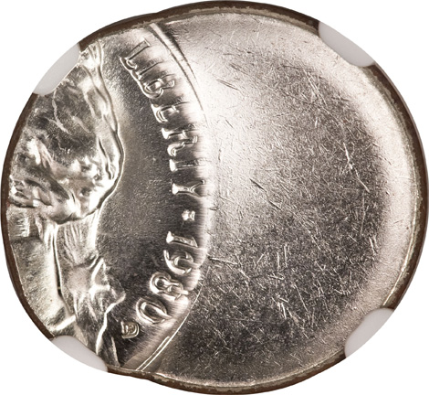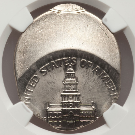 Undated Jefferson Nickel--Struck 70% Off Center on a Clad Planchet With a Straight Clip--MS64 NGC