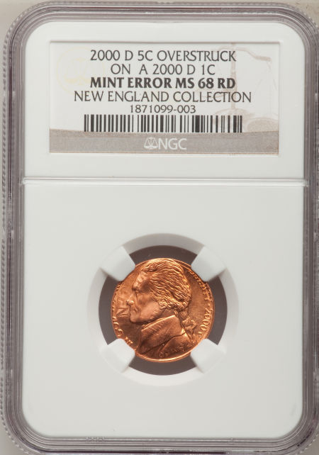 2000-D 5C Jefferson Nickel--Overstruck on a 2000-D Cent--MS68 Red NGC