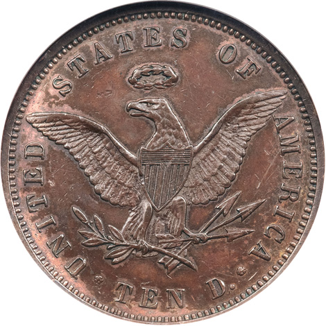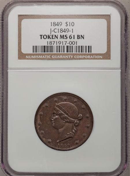 1849 Ten Dollar Pattern by Bouvet, Judd-Appendix C-1849-1, Pollock-5075-1, R.8, MS61 Brown NGC