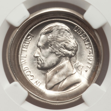 1977-D 5C Jefferson Nickel--Obverse Die Cap--MS67 Six Full Steps NGC