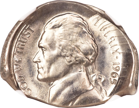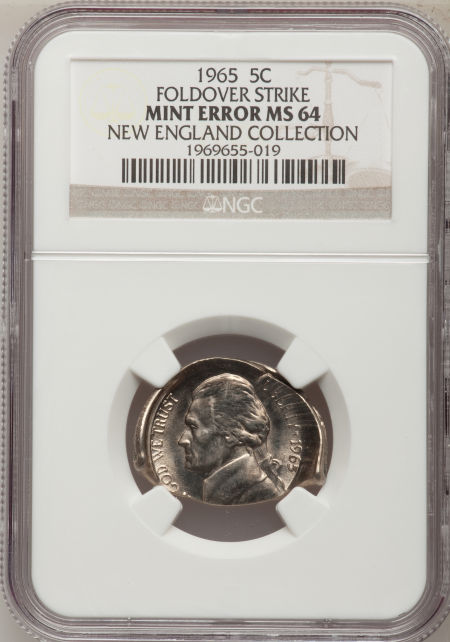 1965 5C Jefferson Nickel--Foldover Strike--MS64 NGC