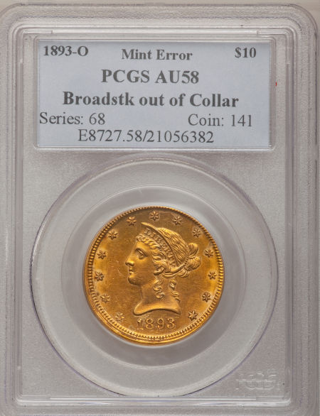 1893-O Liberty Eagle--Broadstruck Out of Collar--AU58 PCGS