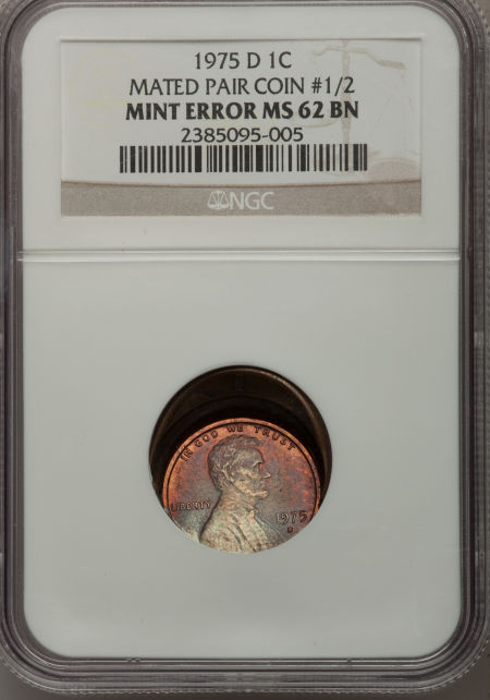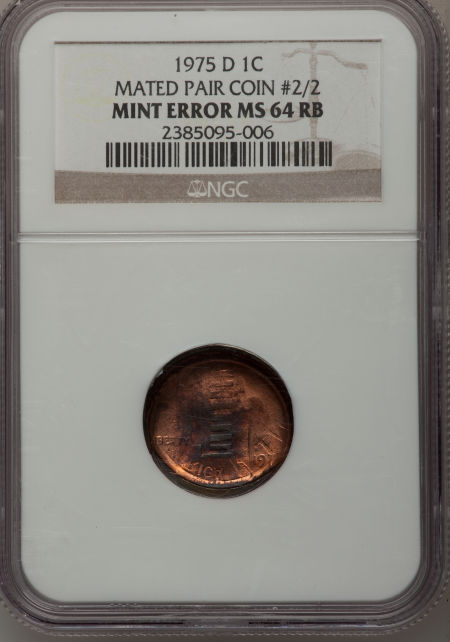 (2)1975-D 1C Lincoln Cents--Mated Pair Coin # 1/2 and # 2/2--MS62-64 Brown and Red and Brown NGC