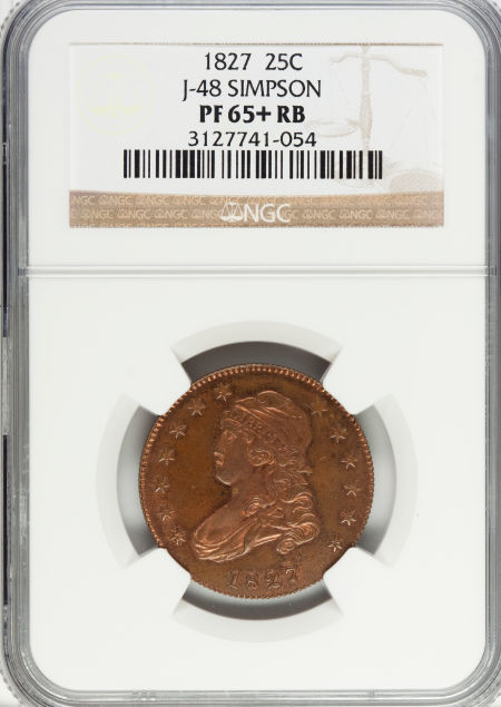 1827 25C Quarter Dollar, Judd-48, Pollock-49, High R.7, PR65+ Red and Brown NGC