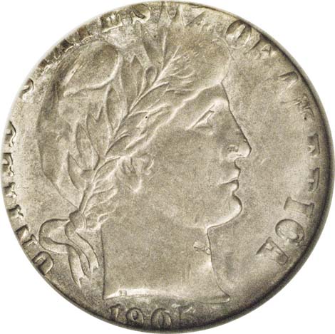 1905 Dime--Struck on a Costa Rica 5 Centavo Planchet--XF40 NGC