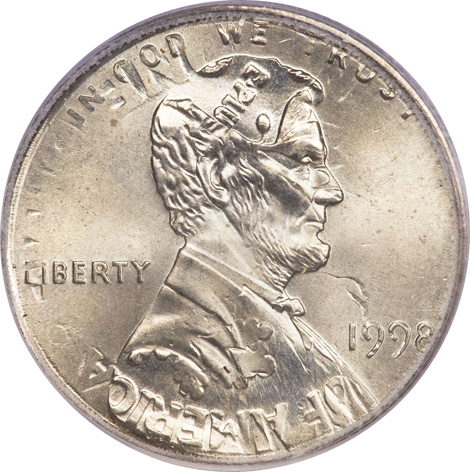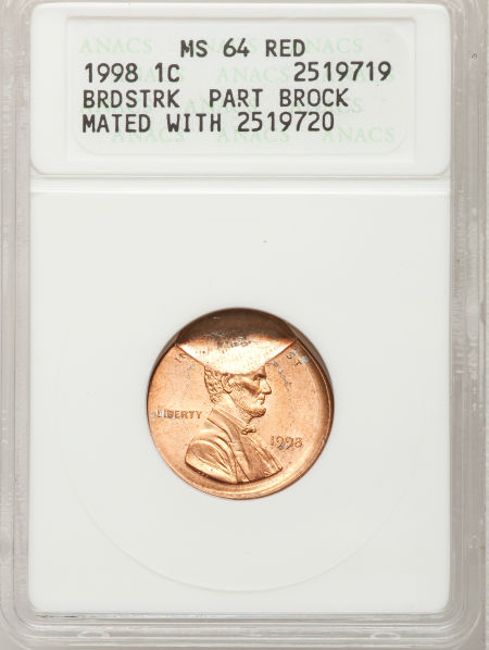 1998 Lincoln Cent--Broadstruck Partial Brockage mated with a 1998 Lincoln Cent--Double Struck--MS65 Red ANACS