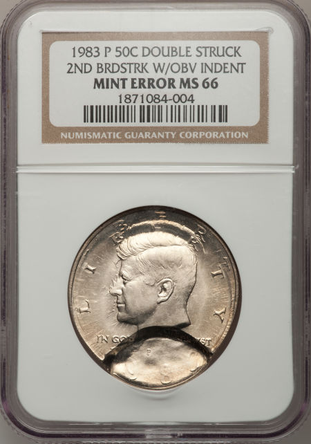 1983-P Kennedy Half Dollar--Double Struck 2nd Broadstruck W/Obv Indent--MS66 NGC