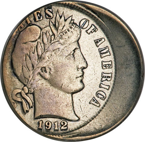 1912-S 10C Barber Dime--Struck 20% Off Center--VF25 PCGS