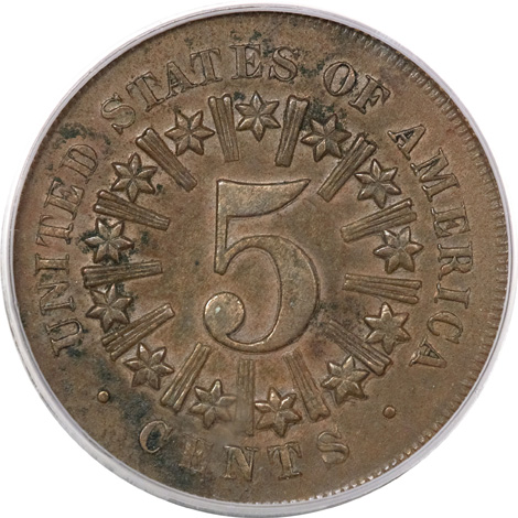 1866 Rays Shield Nickel--Struck on a Cent Planchet--XF45 PCGS