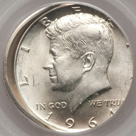 1964 Kennedy Half Dollar--Struck 10% Off-Center and Cupped--MS65 PCGS