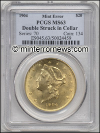 All major mint errors on U.S. Gold coins are very rare. It is amazing that this $20 Gold piece escaped the quality control at the Mint since larger Gold denominations were examined very carefully. This is only one of a few known double struck (or multiple struck) U.S. Gold coins. The new owner is extremely proud of this acquisition and it is the centerpiece of his collection.