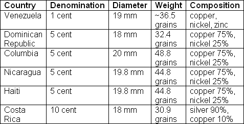 It is believed that this piece and the 1877 illustrated below (J1495-6/P1648-9) were struck on Venezuelan 1 Centavo planchets. These pieces should weigh approximately 36-37 grains.