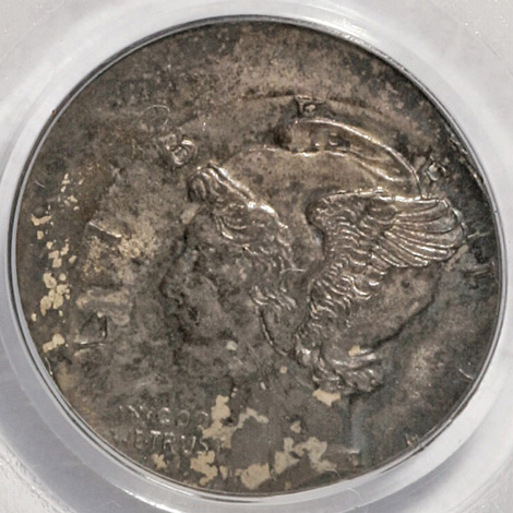 1921 $1 Peace Dollar, Broadstrike Error, AU58 NGC
