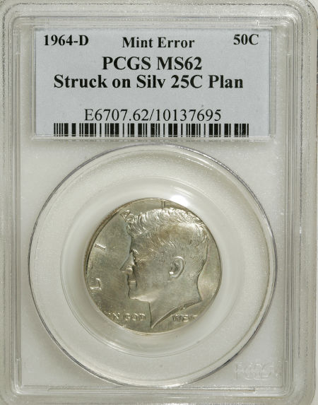 1964-D 50C Kennedy Half--Struck on a Silver Quarter Planchet--MS62 PCGS
