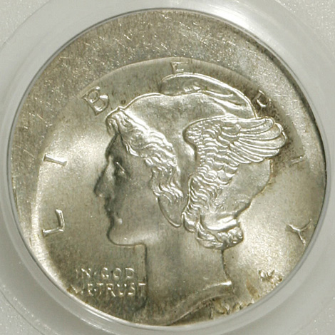 No Date 10C Mercury Dime--Struck 20% Off Center--MS60 PCGS