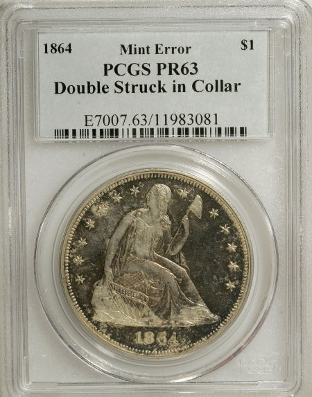 1864 Seated Dollar--Double Struck in Collar--PR63 PCGS