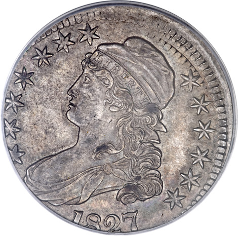 1827 50C Square Base 2--Struck 5% Off Center--AU50 PCGS