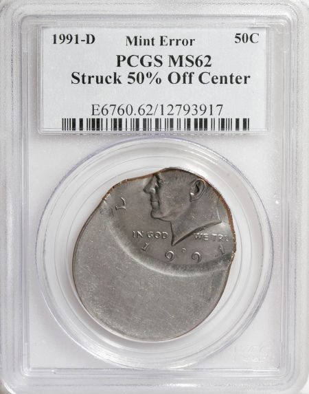1991-D 50C Kennedy Half--Struck 50% Off Center--MS62 PCGS