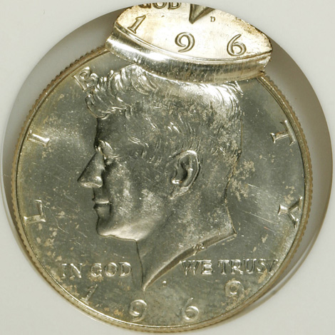 1966 50C Kennedy Half Dollar--Split Before Struck--SMS MS63 ANACS