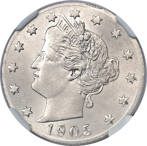 1905 5C Liberty Nickel--Struck on a Foreign Planchet--MS64 NGC