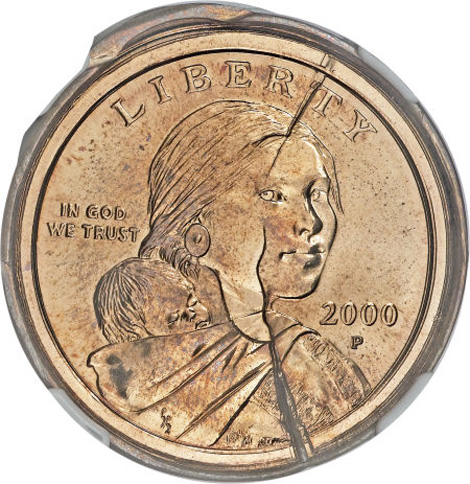 2000-P $1 Sacagawea Dollar--Multiple Strike on Split Obverse Die--MS66 NGC
