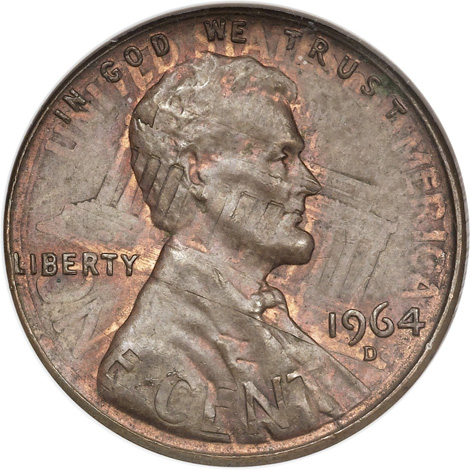 1964-D 1C Lincoln Cent--Struck Over 1963-D Lincoln--MS64 Brown NGC