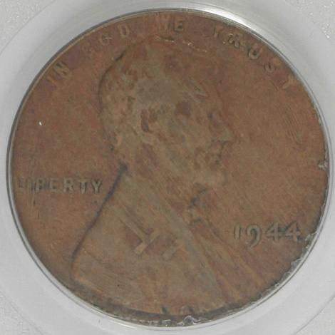 1944 1C --Flipover Double Struck in Collar, Two Dates--XF45 PCGS