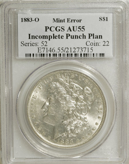 1883-O $1 Morgan Dollar--Incomplete Punch Planchet--AU55 PCGS