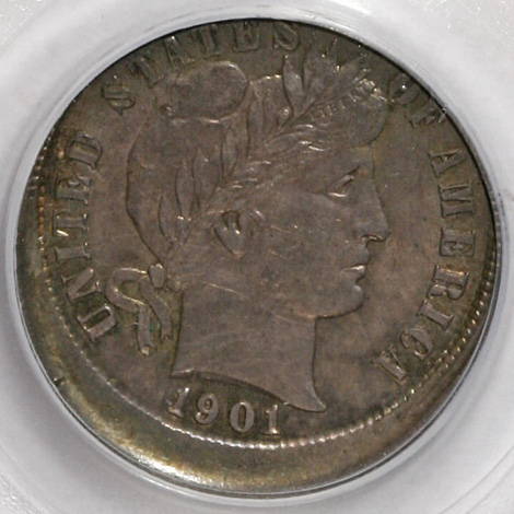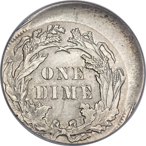 1901 10C Barber Dime--Struck 7% Off Center--MS61 PCGS