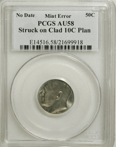 Undated 50C Kennedy Half--On a Clad Dime Planchet--AU58 PCGS