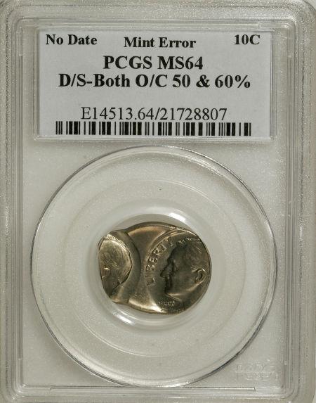 10C Roosevelt Dime--Double Struck, Both Off Center, 50% and 60%--MS64 PCGS