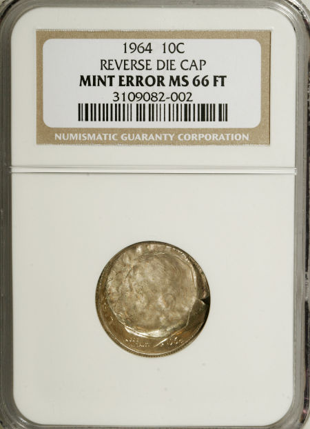 1964 10C Roosevelt Dime--Reverse Die Cap--MS66 Full Bands NGC