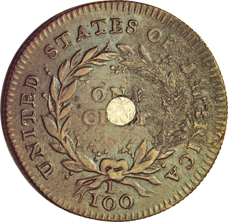 1795 1C Plain Edge--Double Struck in Collar & Indented--AU55 PCGS