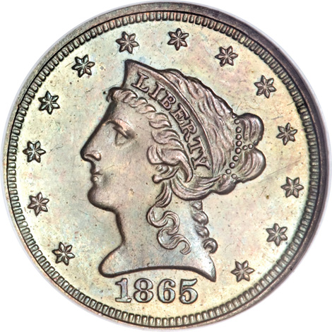 1865 $2 1/2 Quarter Eagle, Judd-439, Pollock-512, Low R.7, PR64 Brown NGC