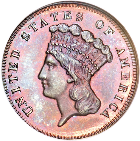 1865 Three Cent Nickel--Struck 15% Off Center--MS63 PCGS