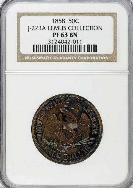 1858 P50C Half Dollar, Judd-223a, Pollock-267, R.8, PR63 Brown NGC