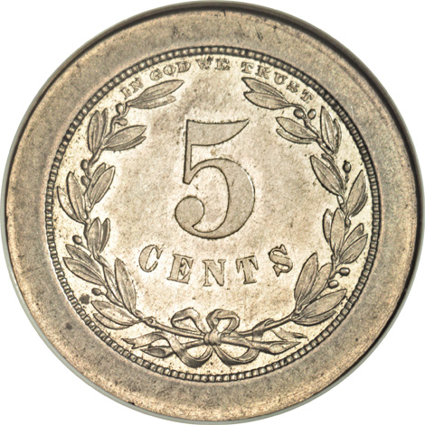 No Date 5C Liberty Nickel--Struck 20% Off Center--MS63 PCGS