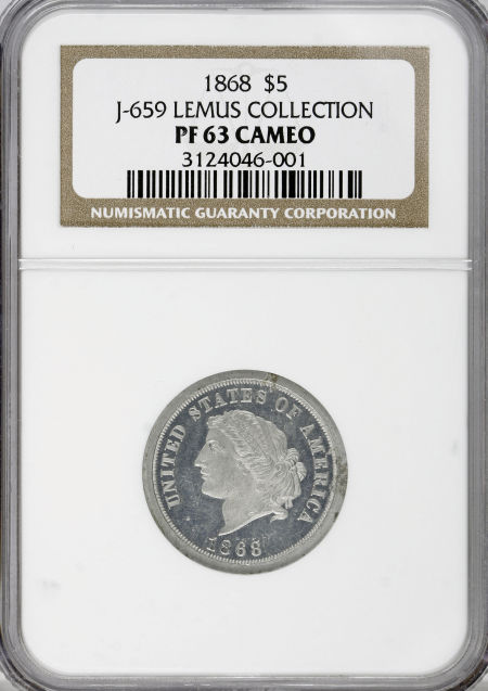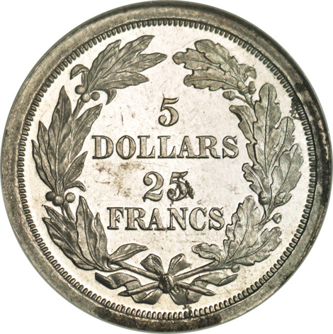 1868 $5 Dual Denomination $5-25 Francs, Judd-659, Pollock-732, Low R.7, PR63 NGC
