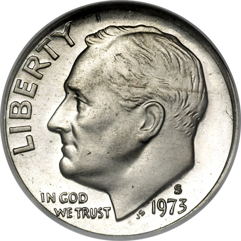 1973-S 10C Roosevelt Dime--Struck on a Liberia 10 Cent Planchet--PR65 NGC