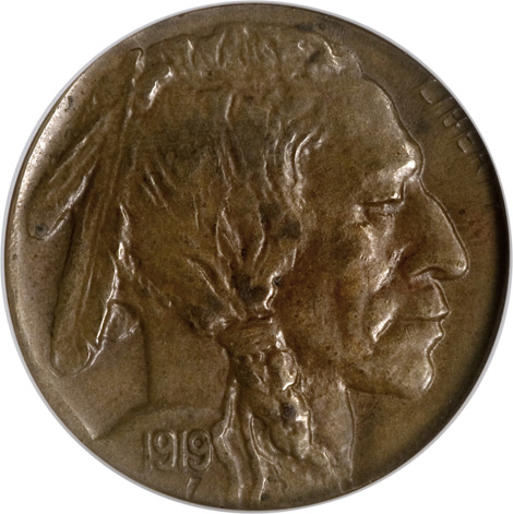 1919 5C Buffalo Nickel--Struck on a Cent Planchet--MS61 Brown NGC