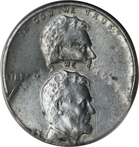 Undated (1943) Steel Cent--Struck Twice, Second Strike 45% Off-Center--AU55 PCGS