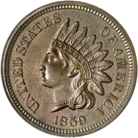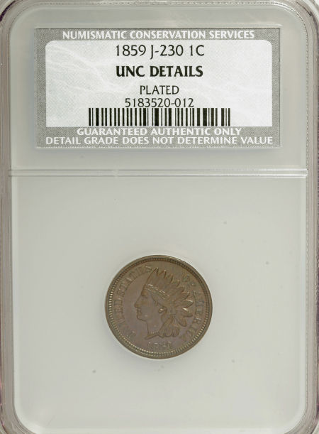 1859 DT1C Indian Cent, Judd-230, Pollock-274, High R.7--Plated--NCS. Unc. Details